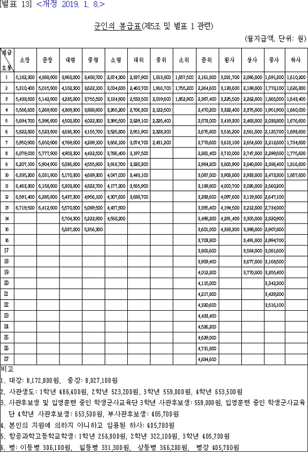 2019년 공무원(일반직,교사,소방,군인,경찰 등) 월급표