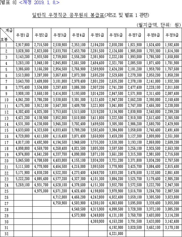 2019년 공무원(일반직,교사,소방,군인,경찰 등) 월급표 확인해보겠습니다.