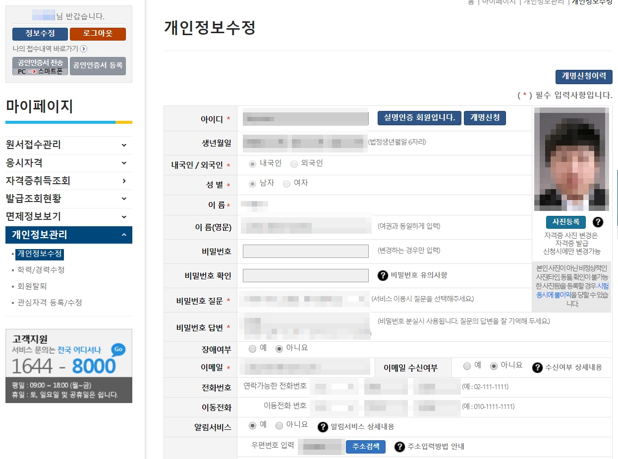 큐넷의 사진은 함부로 변경할 수 없으며 국가기술자격증이 대체가 가능하다보니 해당 정보를 통해서도 어느정도 인정해주는 경향이 있습니다.