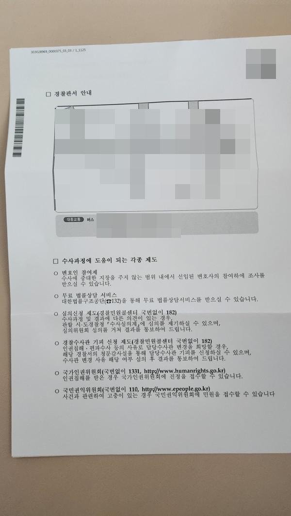 제가 출석요구서를 받은것은 글 작성 하루 전의 일로서 내용은 위와 같습니다.